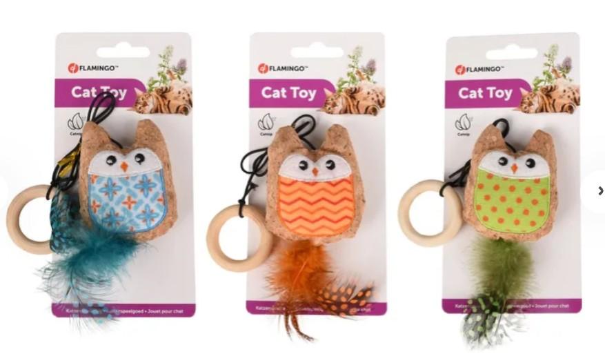 Kirk le Hibou est le jouet parfait pour ton chat ! Fabriqué en textile doux et en liège, avec de l'herbe à chat, des plumes et un anneau élastique pour encore plus de plaisir de jeu. Disponible dans plusieurs couleurs.